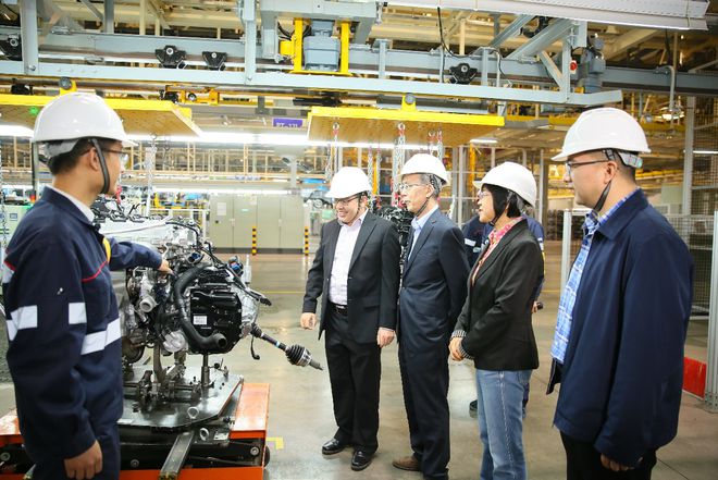 (動(dòng)力領(lǐng)域?qū)<以诤戏手腔酃S聆聽(tīng)長(zhǎng)安工程師講解工廠情況)