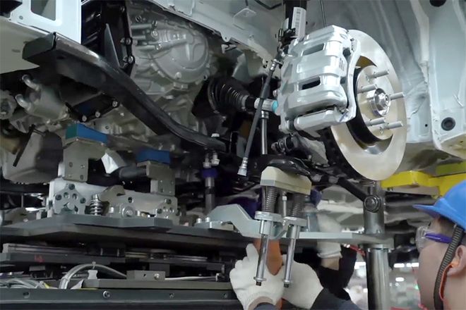 扭矩控制系統(tǒng)也是總裝車間里處于國(guó)內(nèi)領(lǐng)先水平的科技裝備,系統(tǒng)通過(guò)154套高精度工具保證442個(gè)關(guān)鍵擰緊點(diǎn)的準(zhǔn)確性和可追溯性。在生產(chǎn)過(guò)程中,一旦有某個(gè)工位扭力未達(dá)到標(biāo)準(zhǔn),生產(chǎn)線便會(huì)停下來(lái)。